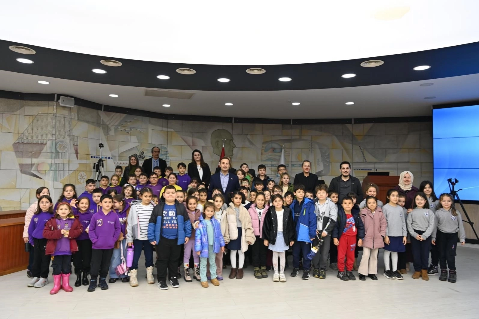 Balıkesir Büyükşehir Belediye Başkanı Ahmet Akın, Belediye Meclis Salonu’nda öğrencilerle bir araya geldi. Çocukların Balıkesir’e dair isteklerini soran Akın, kendisinden talep edilen her konuyu tek tek not alarak takibi bizzat kendisinin yapacağının sözünü verdi.