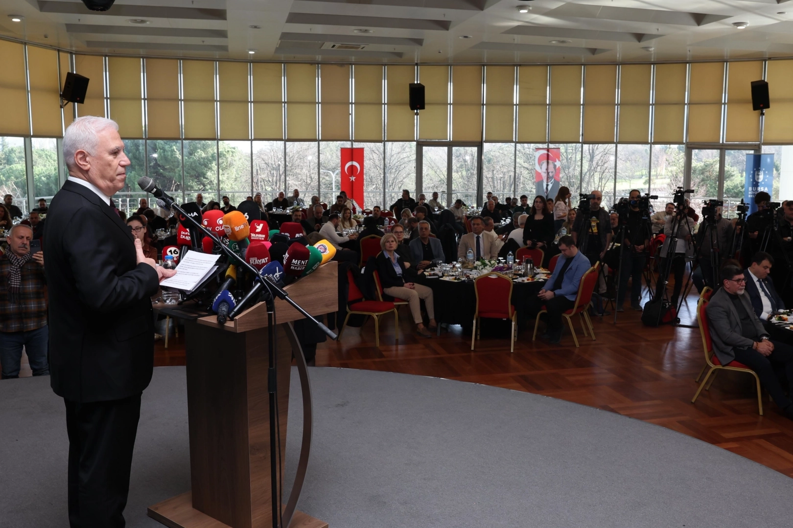 BURSA (İGFA) - Atatürk Kültür Merkezi Merinos Yerleşkesi’ndeki programa, Başkan Mustafa Bozbey’in yanı sıra CHP Bursa Milletvekilleri Hasan Öztürk, Büyükşehir Belediyesi yöneticileri, basın meslek kuruluşlarının yöneticileri, yerel ve ulusal medya temsilcileri katıldı. “BASIN, TEMİZ YÖNETİMİN VE TOPLUMSAL DENETİMİN GÜVENCESİDİR”