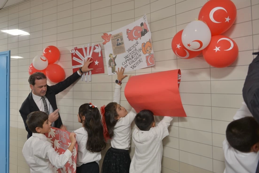 Çocukların hazırladığı çalışmalarla 29 Ekim heyecanının Dörtçelik Çocuk Hastanesi Metro İstasyonu’nda da yaşandığını söyleyen Altunsoy, emeği geçen öğrencileri tebrik ederek Cumhuriyet Bayramlarını kutladı.