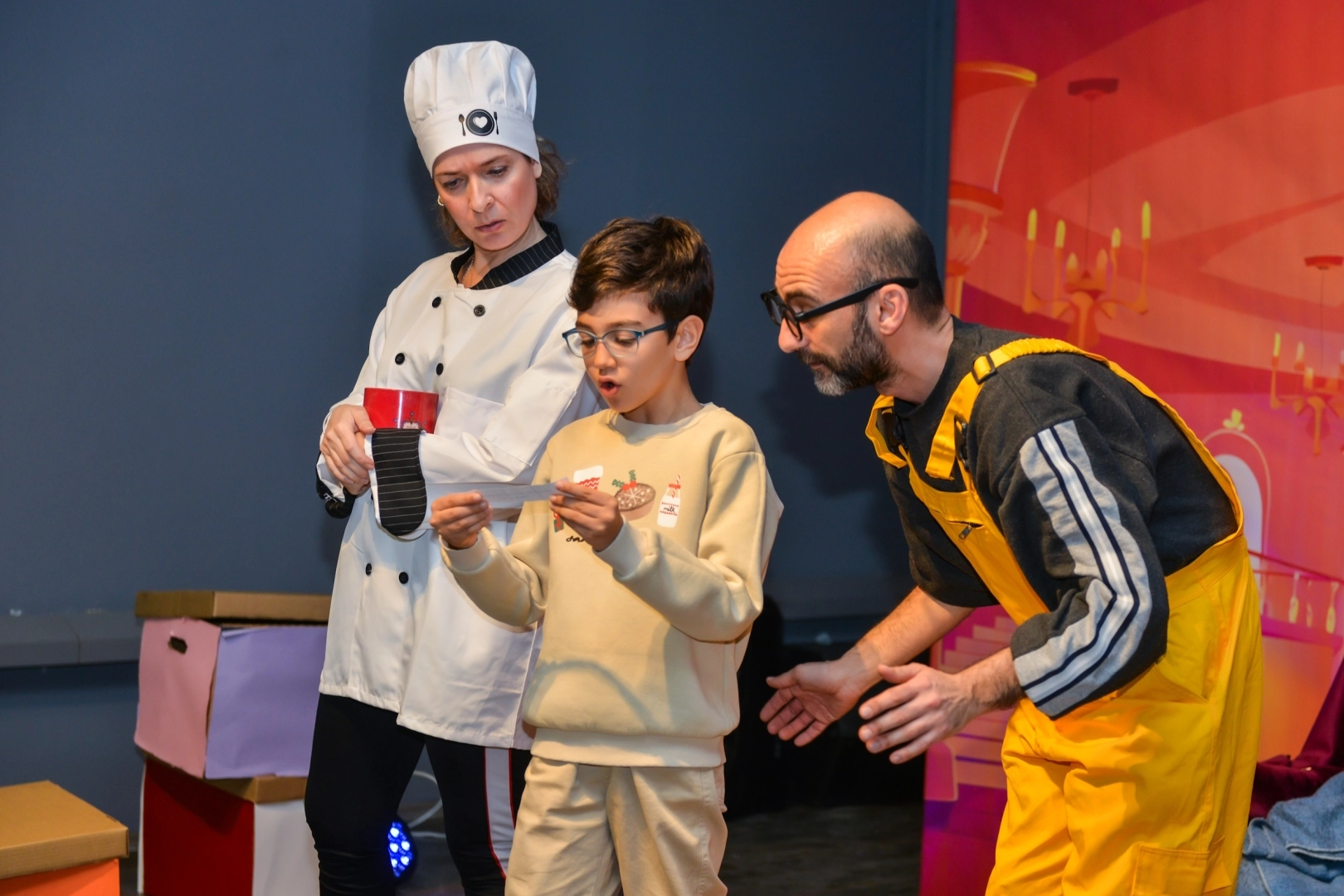 Aşçı tencerelerin içine bakar, bahçıvan çiçeklerin arasında arar. Ama şapka hala yoktur. Bu gizemi çözmek için çocuklar da sahnedeki kahramanlara yardım ederek ipuçlarını arayarak oyunun bir parçası oldu.