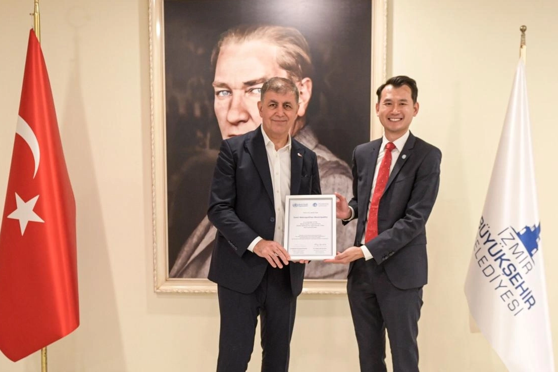 Yongjie Yon, Başkan Tugay’a Yaşlı Dostu Şehirler ve Topluluklar Küresel Ağı sertifikasını takdim etti. Programda Türkiye’den ağa üye olan iki büyükşehirden biri olma özelliğini taşıyan İzmir Büyükşehir Belediyesi’nin, ileri yaşlı bireylere yönelik hizmetleri ile öne çıktığına dikkat çekildi. Toplantıya İzmir Büyükşehir Belediyesi Genel Sekreter Yardımcısı Prof. Dr. Pınar Okyay ve Sağlık İşleri Dairesi Başkanı Ahmet Soner Emre, Dünya Sağlık Örgütü Türkiye Ofisi Halk Sağlığı Uzmanı Doç. Dr. Tufan Nayır da katıldı.